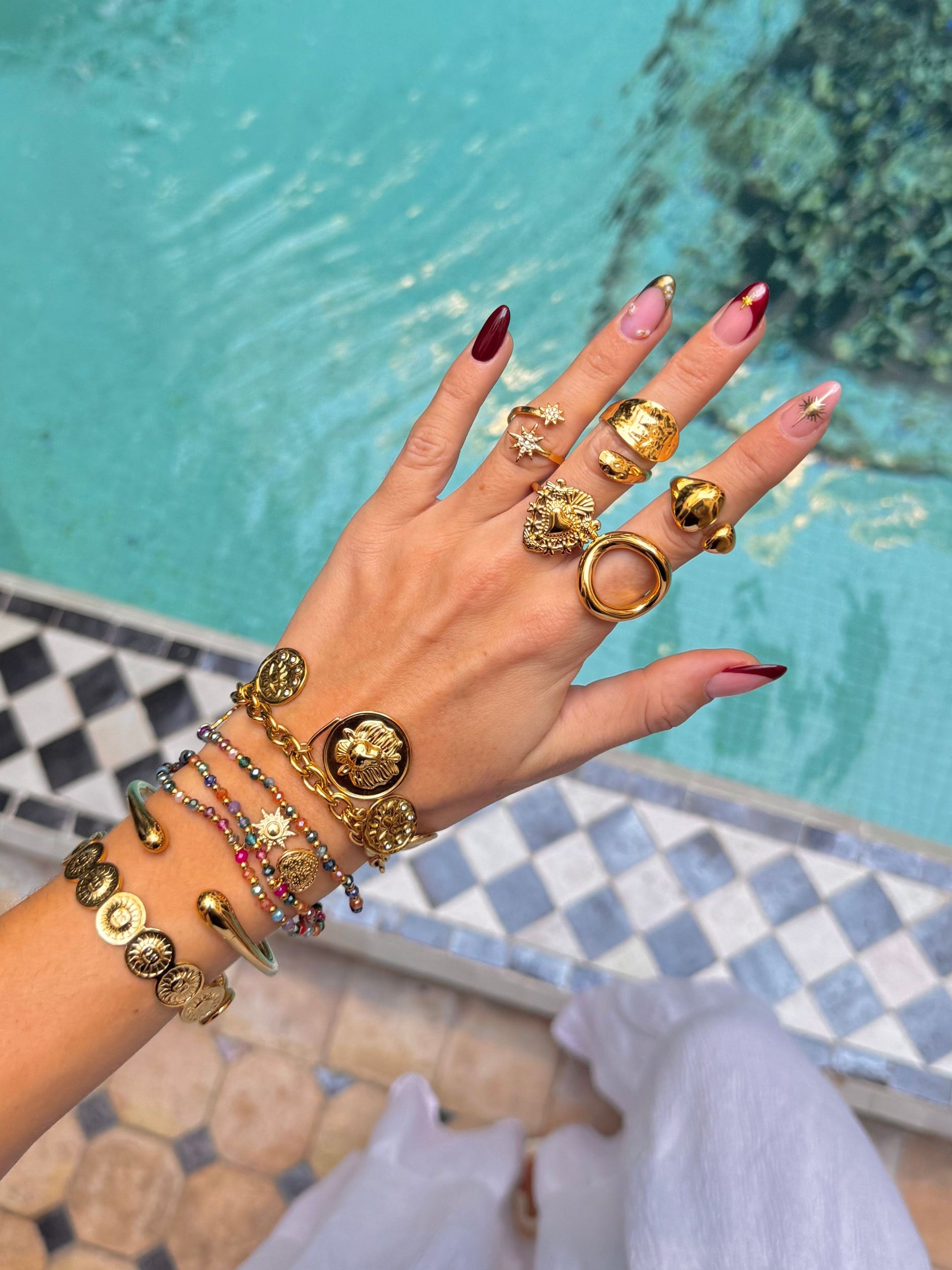 L’ensemble de nos bijoux sont en acier inoxydable, un matériau de qualité qui ne s’oxyde pas et qui résiste à l’eau. Idéal pour embellir vos tenues !